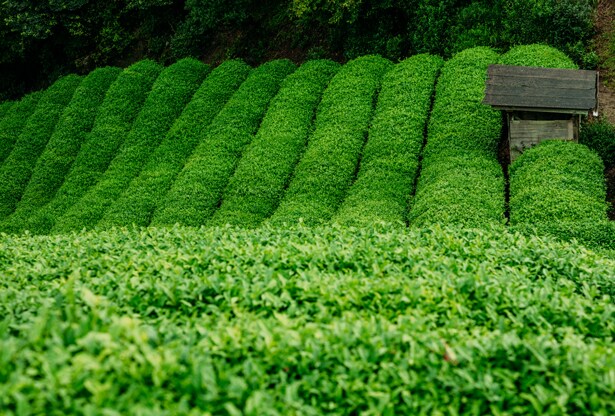 En la granja familiar Obubu Tea en Kyoto, Japón, han perfeccionado el delicado proceso del cultivo del Gyokuro, también conocido de forma más romántica como el rocío del jade. Esta técnica revolucionaria consiste en -justo antes del tiempo de cosecha-, a finales de Abril, recubrir el cultivo completo de Gyokoru durante tres semanas con una costosa sombra negra. Así se previene que la luz directa de los rayos del sol toque las verdes hojas disminuyendo el proceso de la fotosíntesis, logrando cambiar la química de las hojas del té, generando niveles superiores de cafeína y teanina, la clave de los componentes que ayudan a energetizar, suavizar y proteger las células de la oxidación y la irritación. Después de tres semanas en la sombra, solo las hojas más jóvenes y vitales son cosechadas a mano y vaporizadas, después son enrolladas de forma artesanal para dejarlas secar al aire y así permitir que los verdaderos componentes del sabor del té se liberen completamente.
